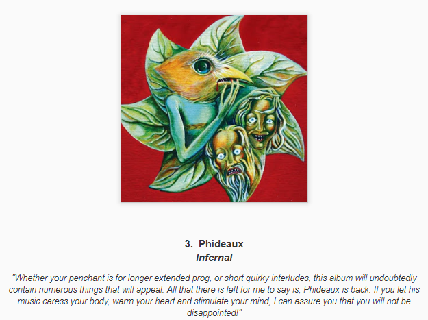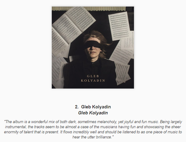 Every year there usually seems to be at least one album that I hear really good things about that doesn't show up on anyone's list here. This year that seems to be the latest album by Damanek "in flight" but also the self titled debut by Gleb Kolyadin. Both of those showed up on DPRP's top 10 for 2018.