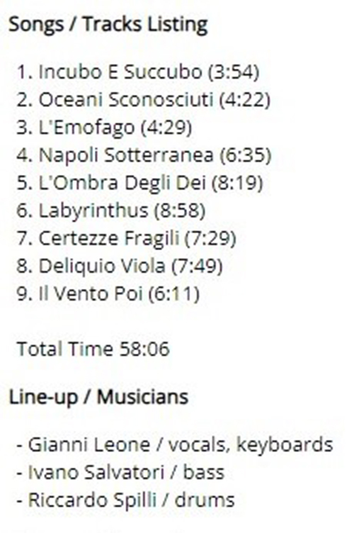 Attachment 1754 ABOUT I VIAGGI DI MADELEINE ...from Prog Archives.com and Official site I VIAGGI DI MADELEINE I Viaggi di Madeleine biography The band was formed in 2015 by musicians with 10 years of experience. Inspired by 80's and 90's rock, the band made a 4 songs demo while touring and before releasing his first song in 2016. It's in 2019 that their first self-titled album was released. The music has some influence from bands like LE ORME, PFM, BANCO and GOBLIN. Our music transcends reality and projects itself into surreal, dreamlike worlds, which in some way are the metaphors of the time we live in. The epilogues of the stories we tell, most of the times are not rosy, even if characterized by messages of hope and human salvation. Attachment 1753 Hi friends 2023 Work in Progress..ive These are my best tracks of 2023 Track Title-Group or Artist-Album I'm Done with You-RIVERSIDE-ID.ENTITY Life Lines-SUNCHILD-Exotic Creatures and a Stolen Dream Scanning The Dark Horizon-JOHN IRVINE-Scanning The Dark Horizon Memories in a Box-SINGLE CELLED ORGANISM-EVENT HORIZON To_find_the_light_part_two-GREAT WIDE NOTHING-Hymns for Hungry Spirits, Vol. II Ghosts From The Future-OVERHEAD-Telepathic Minds (Disc 1) King_of_the_world-RPWL-Crime Scene(Disc 1) No Man's Land-TNNE-LIFE 3.0 Mysterious Forest, Pt. 1-KARFAGEN-Passage to the Forest of Mysterious Something New-MARTIN MILLER-Maze of My Mind Kill_the_sun_and_the_moon_and_the_stars-THE BLACK CAT'S EYE-The Empty Space Between A Seamount And Shock-Headed Julia Gargantuan.(Part One)-AMPLIFIER-Hologram The Beauty and the Least-MYSTERY-Redemption Scratches-INNER PROSPEKT-Canvas Three All Connected-YES-Mirror to the sky Summer Lies Beyond-COMEDY OF ERRORS-THRENODY FOR A DEAD QUEEN The Sacred Law of Retribution-TRITOP-RISE OF KASSANDRA Ingravita-BUHO ERMITANO-IMPLOSIONES Danger-ELOY-ECHOES FROM THE PAST Naturens katedral-LARS FREDRIK FRØISLIE-FIRE FORTELLINGER Ur askan-AGUSA-PRIMA MATERIA The 11th Chapter: The Nine, including a) The Fire (pt II), b) A Nonagon in Eight -RING VAN MÖBIUS-Commissioned Works Pt II - Six Drops of Poison Journey to the Center of the Mind -MARCO RAGNI-HALLUCINATORY EMBRYO Poker -I VIAGGI DI MADELEINE-TRA LUCE E OMBRA Attachment 1755 Attachment 1756 Poker-I VIAGGI DI MADELEINE https://www.youtube.com/watch?v=dZlVx9dCFRc GOOD LISTENING |