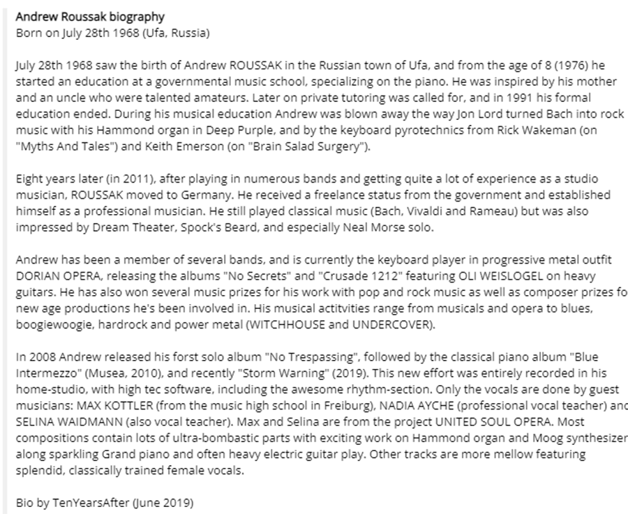 thank you for the suggestion, I did not know the album I know your preferences for EL&P and in particular for Keith Emerson ... nothing close to his skill but I will give you a suggestion too listen to the latest album by Andrew Roussak Russian keyboard player who listened to a lot of music by great keyboard players from Jon Lord to Rick Wakeman to Keith Emerson https://andrewroussak.bandcamp.com/a...ssing-the-line good listening TED Greetings nicola |