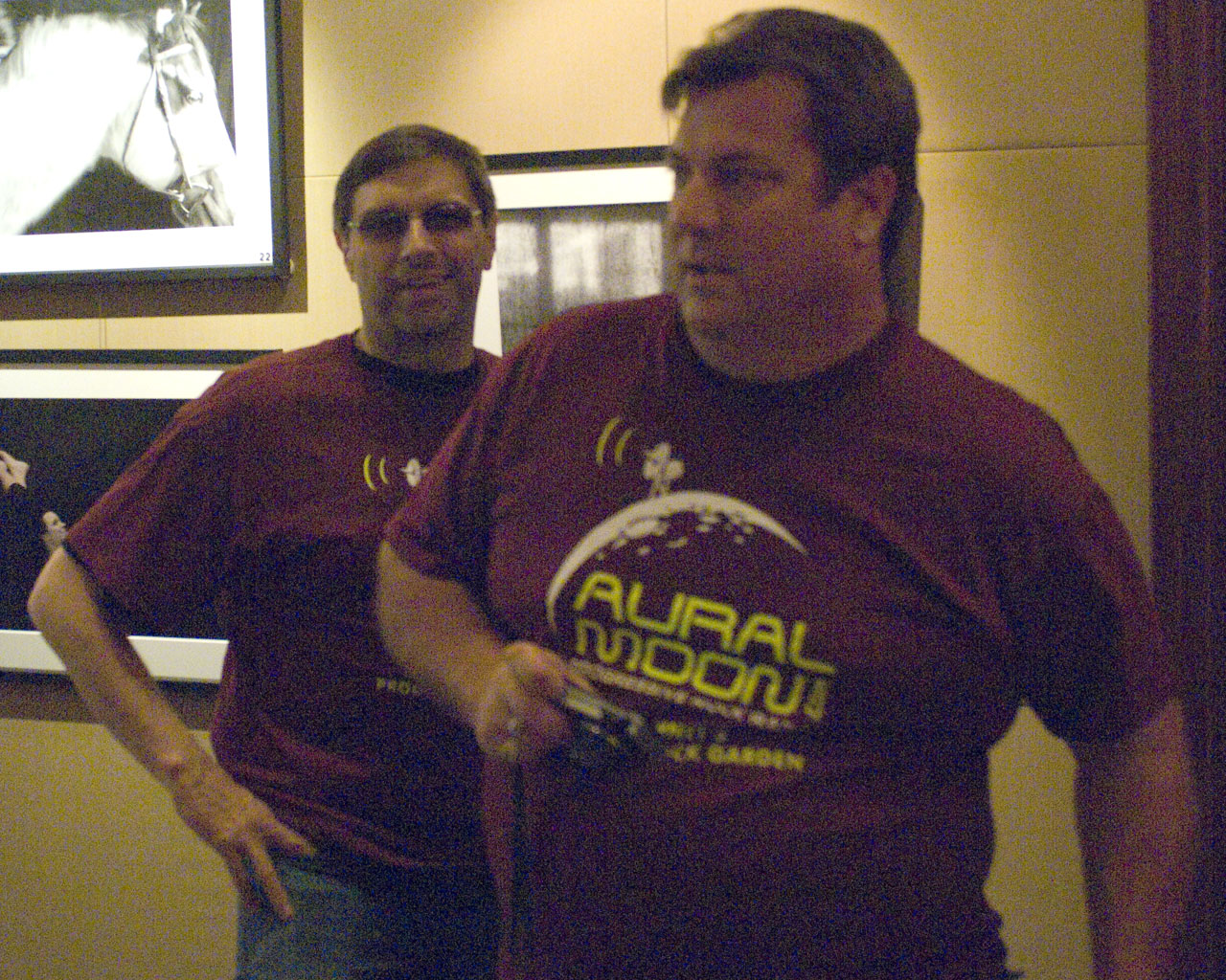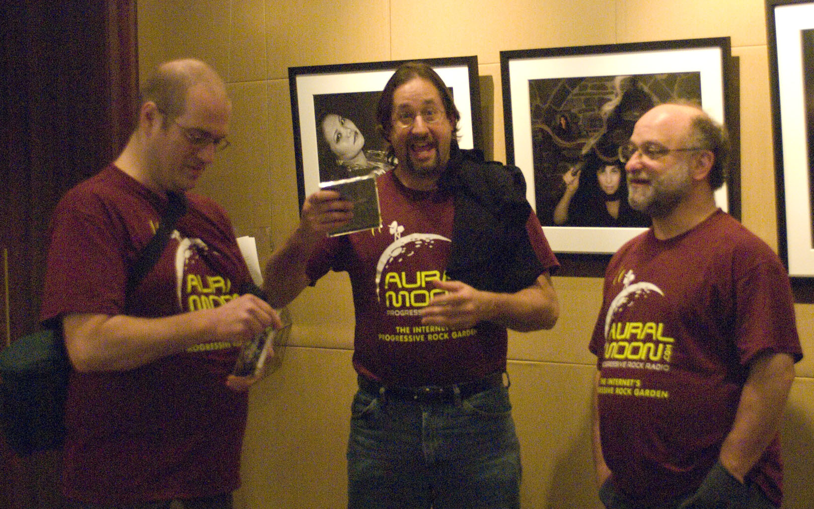 Here's the Aural Moon at ROSfest group shot. Attachment 520 Where do you all buy your clothes? :D From left to right: Back Row: KeithieW, Teermin8r, Laudio9, Magic Mountian, Mike413 Middle Row: NorCalKurt, Clambake, TobyTanzer (peeking), OceanVic, Dr. Bob, Carol, Hunnibee, cumquott Front Row: M, Laxmi, Krista Floor: Roger, Cairn, VAXman, RogorMortis, JamForte And here is one of Erik Norlander. Attachment 521 Notice too his great fashion sense. Erik, August and the "Wall of Doom"... Attachment 522 |