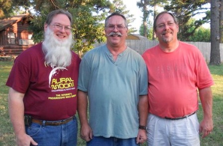 I am posting a picture of me wearing my Aural Moon t-shirt (which my kids got me as a birthday present!!). In the photo, I am on the left, my older brother, Rick, is in the middle and my younger brother, Bruce, is on the right. It was taken at a State Park in Arkansas - Crowley's Ridge State Park - where we had a family reunion over the 4th of July holiday. Please - post your pictures of YOU in your Aural Moon t-shirt!!! Regards from Texas, Ted |