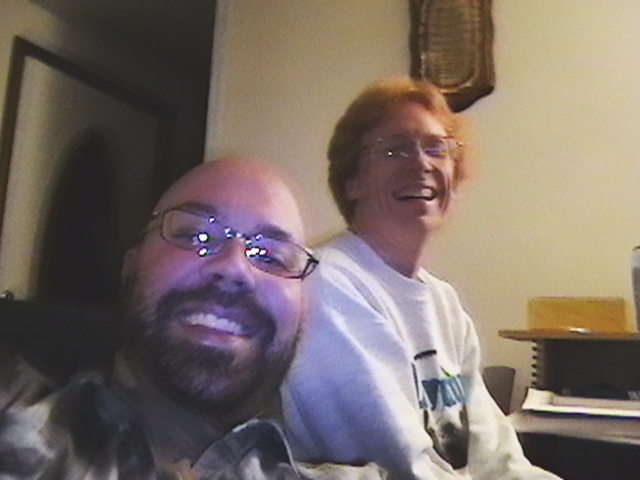 Can anyone name the band on my sweatshirt? Thanks Moses for putting me up. Listening to Pittsburgh radio and fighting the morning rush hour traffic, then the heavy snow (yes snow!) and the trucks on the Parkway was all worth it. Doing 70 in the elements is not to be repeated. Chatting on the Moon with dueling computers was surreal... |