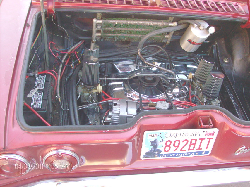 Chris Teer (Teerminator) and I met up at the Heart of Texas (HOT) Corvair show at the Hill Country Gallaria in Bee Cave, TX (outside of Austin, TX) today. My wife (Carol) and I drove over and visited with Chris. He was picked last night to be one of the judges for the event - so we didn't have a lot of time to talk - but we enjoyed each others company and had a good time. We got to see Chris' red Corvair convertible. It was fun to be with Chris and hear about his passion - he owns two Corvairs - one for 25 years. Below are some pictures of our time their. The pictures: 1) Ted Neil & Chris Teer, 2) Carol Neil (Ted's Wife) and her favorite - a purple Corvair, 3) Chris' Corvair - Interior, 4) Chris' Corvair - Engine, and 5) Ted in front of Chris' Red Corvair convertible. Regards from Texas, Ted |