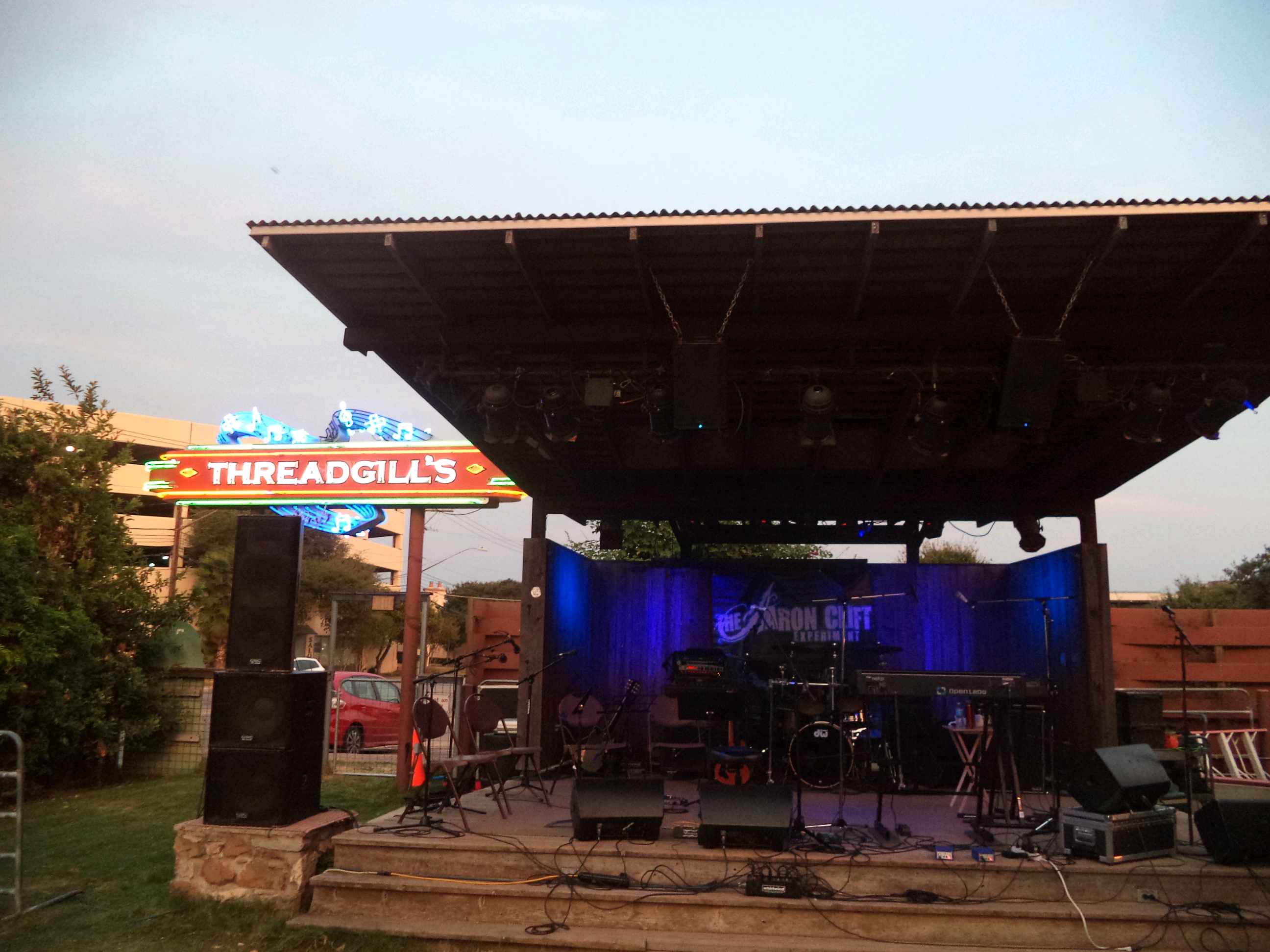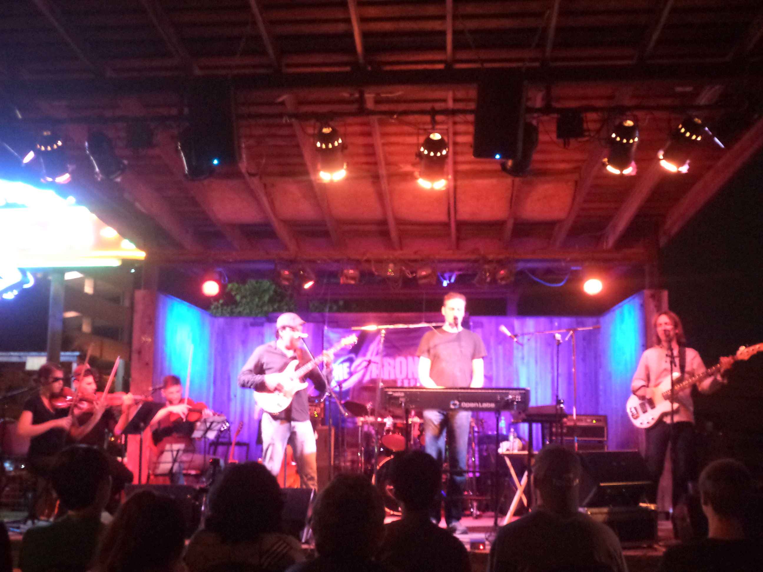 The venue was excellent and the moon was rising over the stage as they played - going well with a couple of their songs, "Moonscape" and "Bathed in Moonlight". All in all it was an EXCELLENT, well played show. Outdoors - not too hot - low 90's - nice breeze. In the first image - the Threadgill's sign and outdoor stage - with A.C.E. backdrop. 2nd image: Me & my wife. 3rd image: my daughter Amanda. 4th image: Aaron Clift Experiment - jammin' out!. 5th image: A.C.E. with string quartet - an amazing blending of sound! Regards from Texas, Ted |